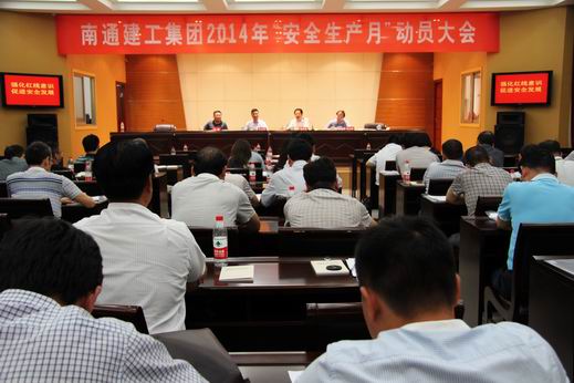 2014年5月30日下午,集团公司在总部报告厅召开了2014年“安全生产月”动员会暨2013年度安全生产先进表彰会。集团公司总部领导、总部部门副职以上领导、安全生产部和工会全体人员、各分(子)公司总经理、安全生产主管经理、工程部经理和在南通施工的项目经理共六十多人参加了会议,会议由集团公司副总经理殷友根主持,张向阳总经理出席会议并作重要讲话。