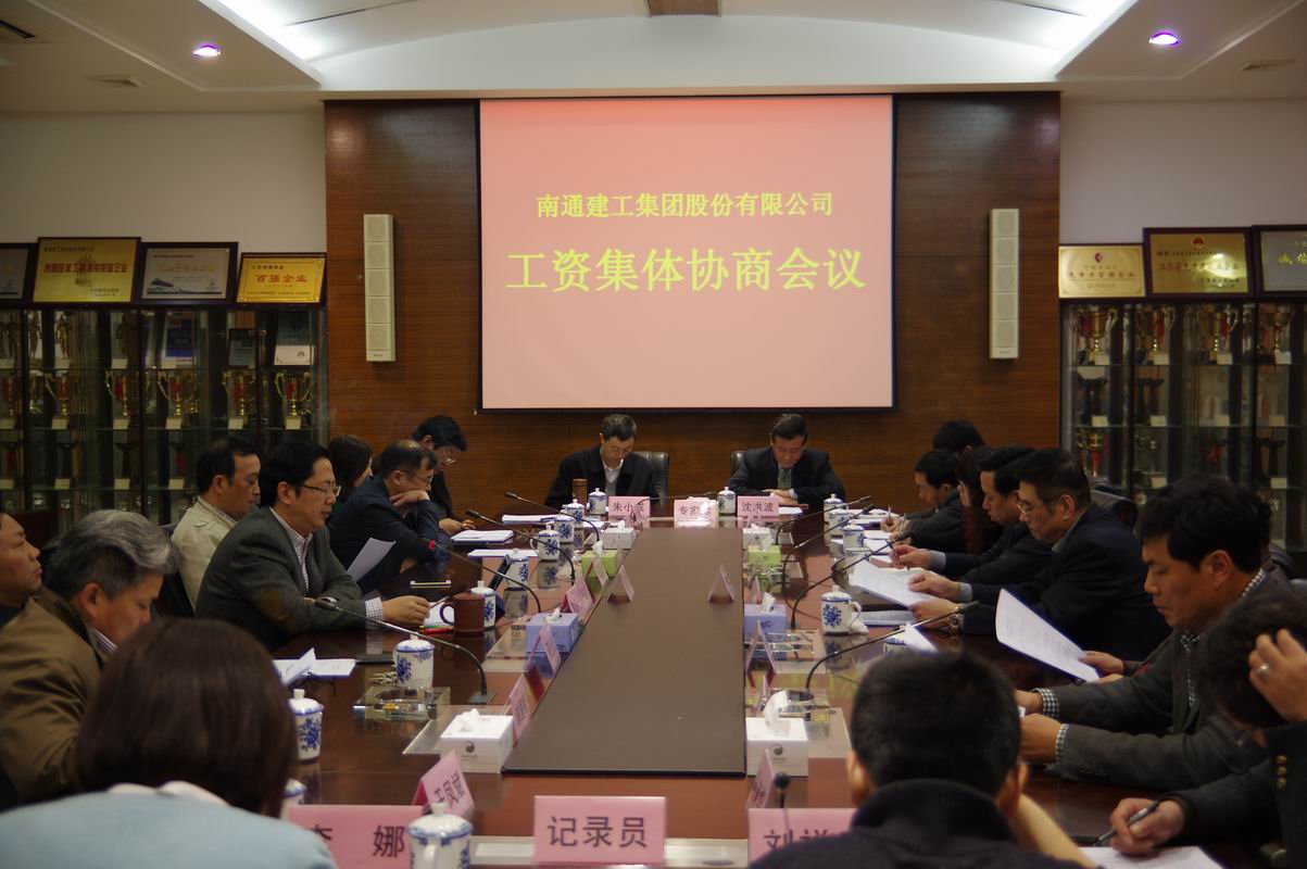 4月20日,集团公司召开新一轮工资集体协商会议,就2015年职工工资增长水平、津补贴发放、保险福利等重点问题以及文本草案的有关内容进行了广泛交流、磋商与沟通,达成了共识,形成了职工工资集体协商专项协议文本(草案)。公司行政方与职工方各12名代表参加会议。行政方首席代表、集团公司董事长张向阳,职工方首席代表、集团公司工会主席李卫东公司工会主席分别主持会议。南通市城乡建设局工会主席朱小成代表上级工会出席会议并给予了现场监督和指导。