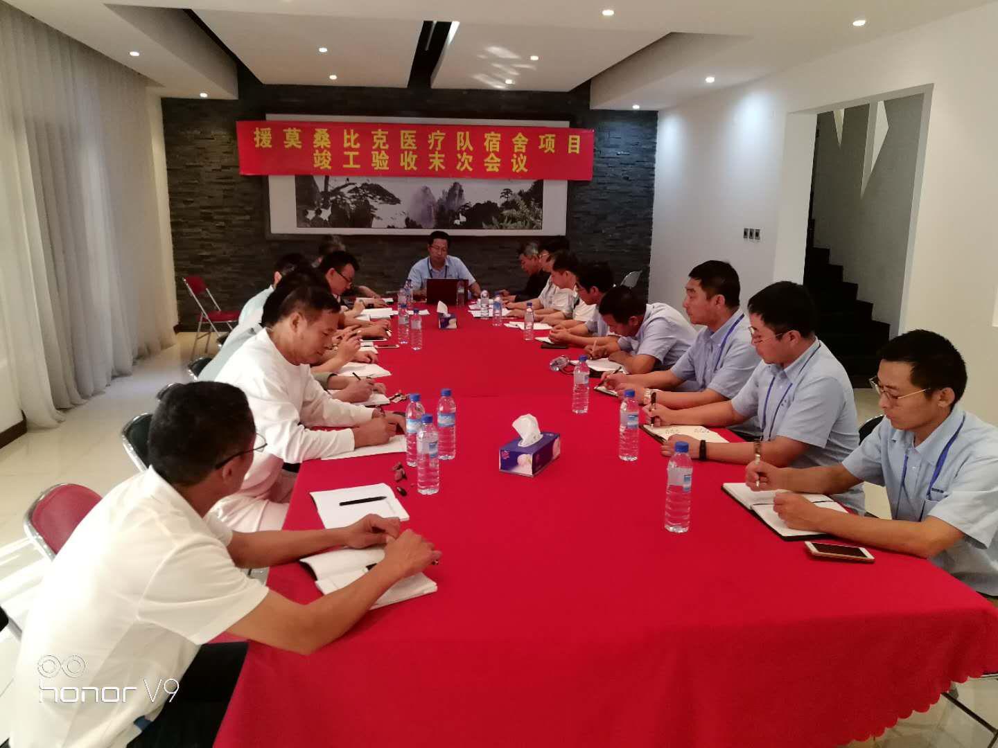 5月26日下午,验收组及参施三方在我驻莫经参处会议室召开了本次验收的末次会议,会上验收组组长对项目施工技术组在诸多不利因素影响下,仍能够如期完成装饰装修及机电设备安装、室外总平施工,而且总体施工质量良好,施工中未出现任何安全事故,给予了充分肯定,并现场宣布了竣工验收结论。我驻莫经济商务处刘晓光参赞对ag旗舰厅集团在项目实施过程中能够加强和莫方沟通、自我加压解决工期压力、克服雨季施工、场地狭小等各种困难,按期保质完成施工任务给予了高度赞赏,他祝愿我公司在莫桑比克市场承接更多项目。