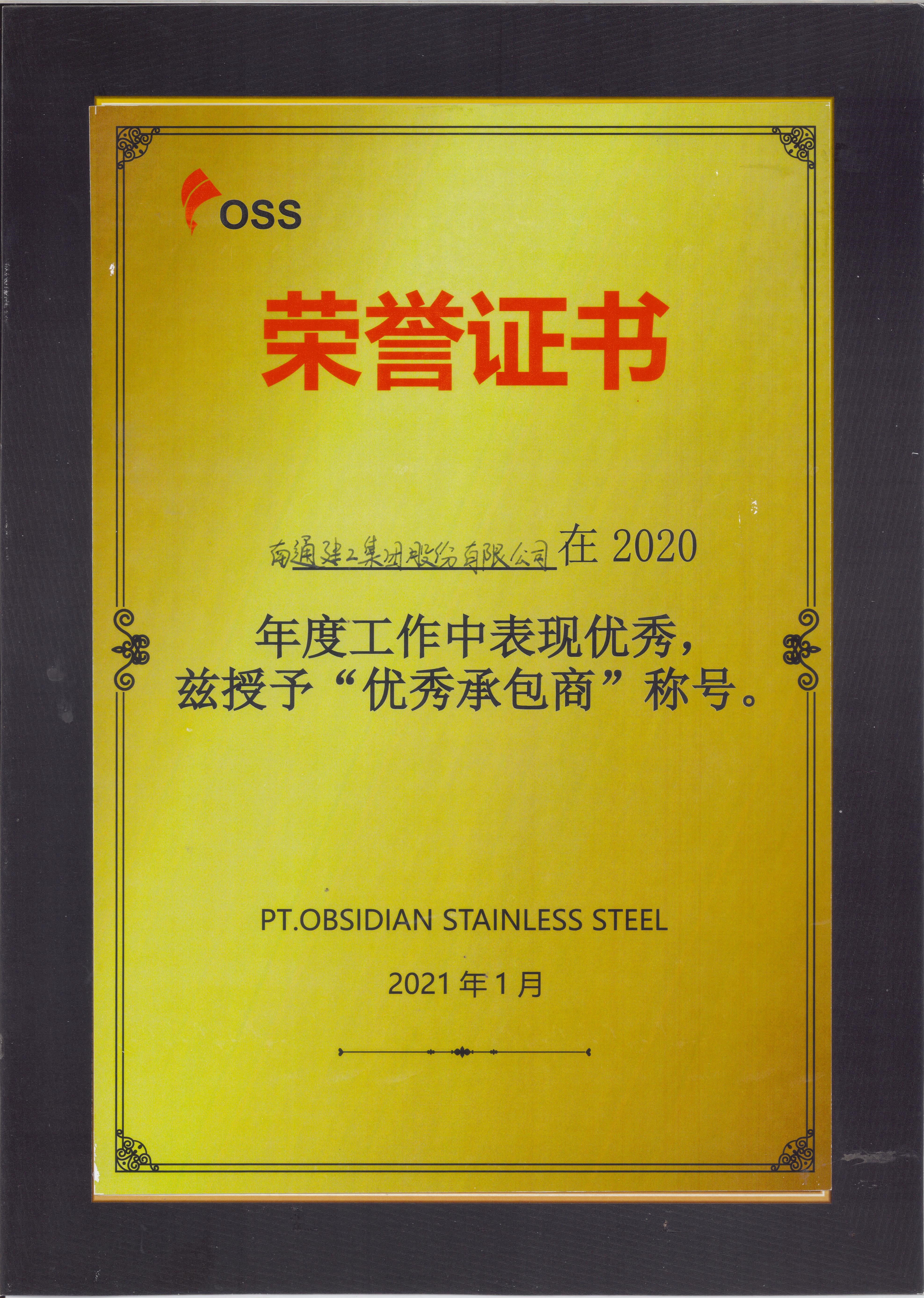 经过不懈努力,项目部圆满完成了业主所要求的各节点施工任务,得到了监理和业主的充分认可,并因此追加了原合同以外的工程,合同额由6000万元追加至2亿元。2020年度,由于出色的协调能力和良好的配合意识,业主PT.OSS电厂专程给ag旗舰厅集团发来感谢信,项目部也被评为PT.OSS电厂“优秀承包商”。