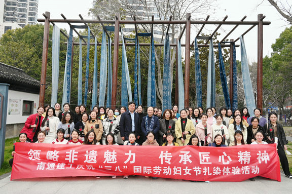 人间最美三月天,春花烂漫展新颜。为庆祝第113个国际妇女节,进一步丰富女性职工的业余文化生活,激励大家保持健康向上,充满活力的精神面貌,共同度过一个健康快乐、和谐温馨而又有意义的节日,集团公司工会于3月8日组织开展以“领略非遗魅力 传承匠心精神”为主题,开展庆祝“三八”国际劳动妇女节妇女节扎染体验活动,公司南通片区的60名女职工参加活动。集团公司董事会秘书黄晶、工会主席王少波参加活动并为女职工们送上鲜花,同时祝贺每位女职工节日快乐。